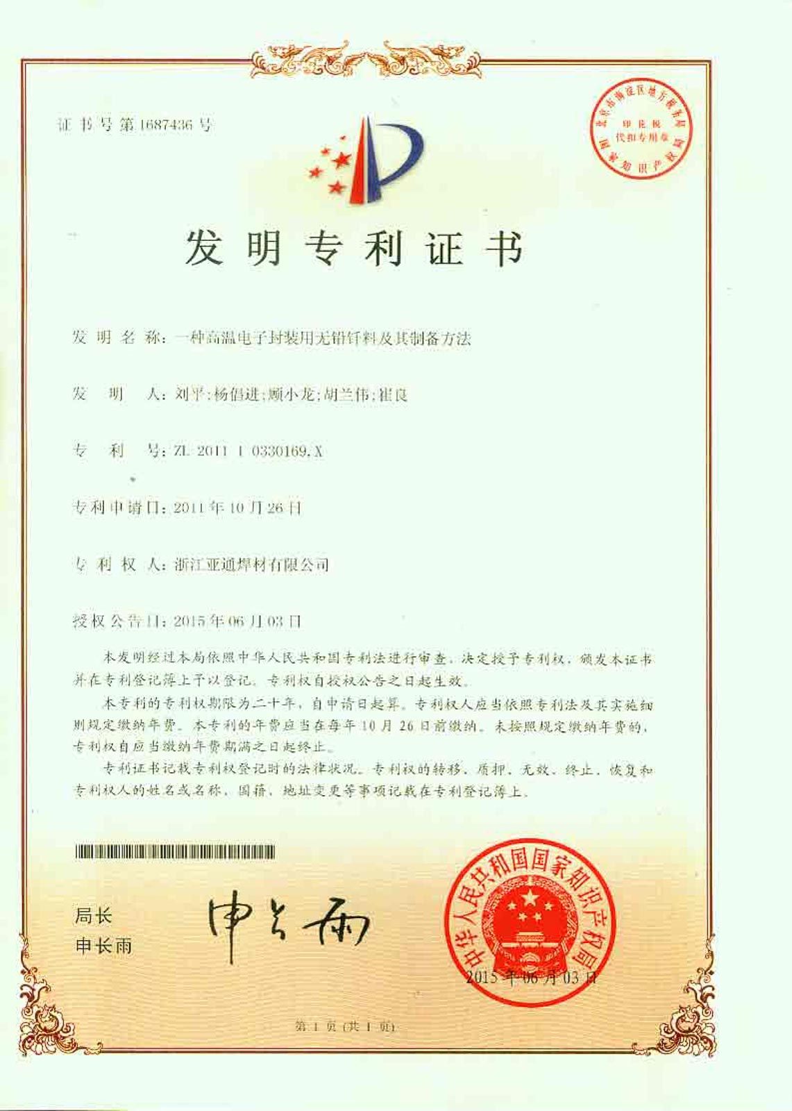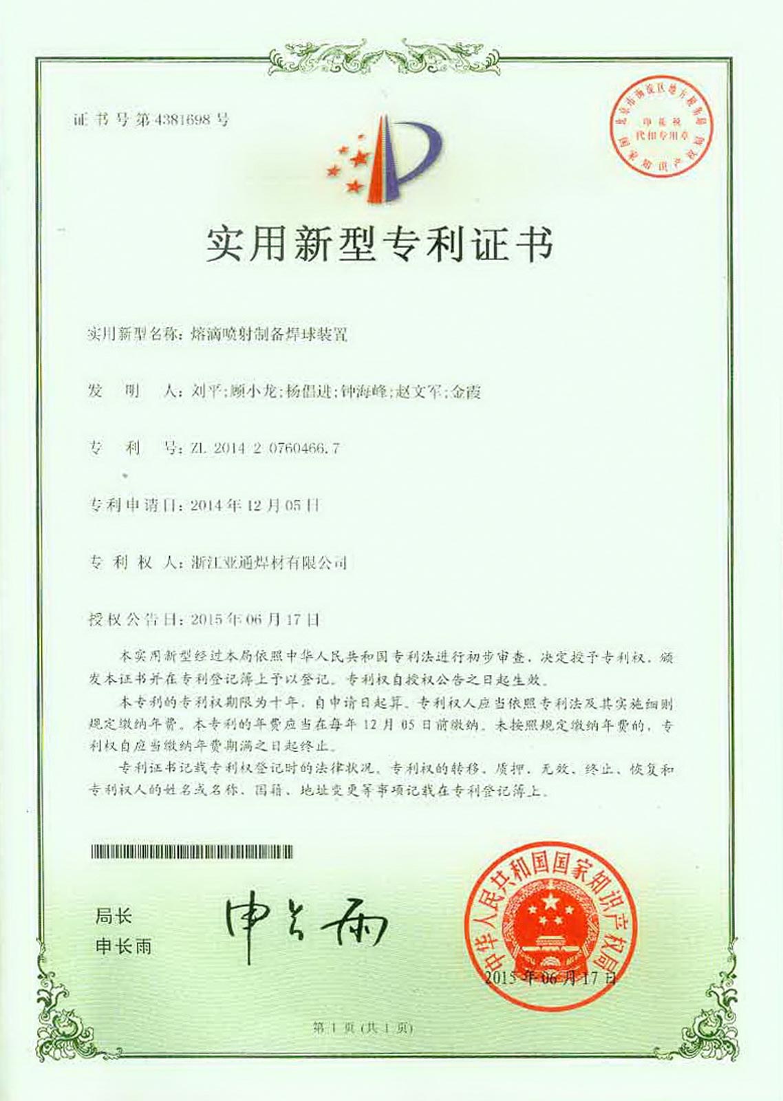 2016年4月,經省科技廳、省發改委、省經信委、省財政廳批準,浙江亞通新材料股份有限公司作為先進釬焊材料產業技術創新的綜合試點單位,組建浙江省亞通先進釬焊材料重點企業研究院,2020年12月建成并對外開放。